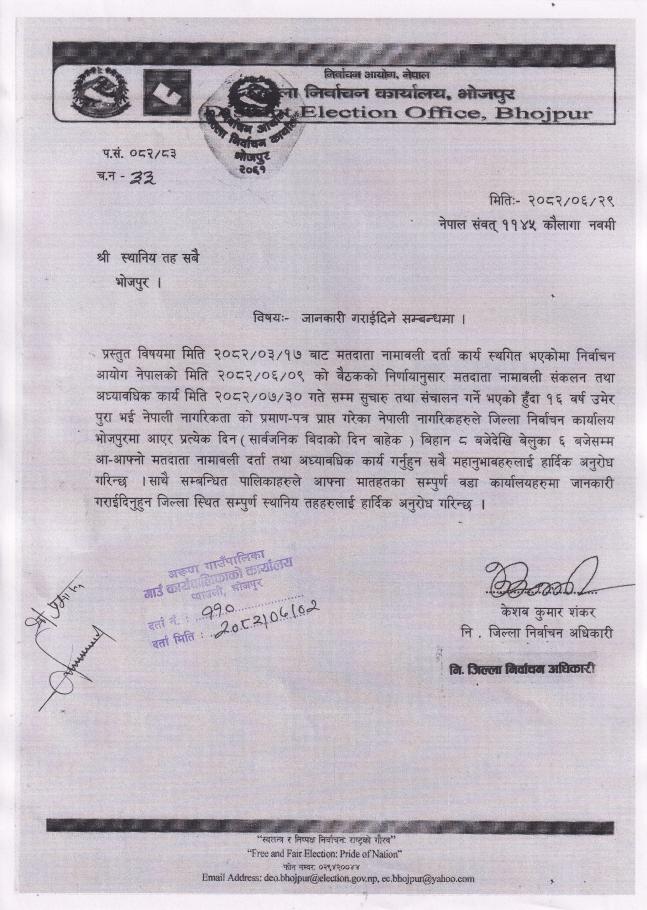 नेपाली सेना श्री नयाँ श्रीनाथ गण, भोजपुर व्यारेक, भोजपुर जिल्लावासीमा नेपाली सेनाको अपिल